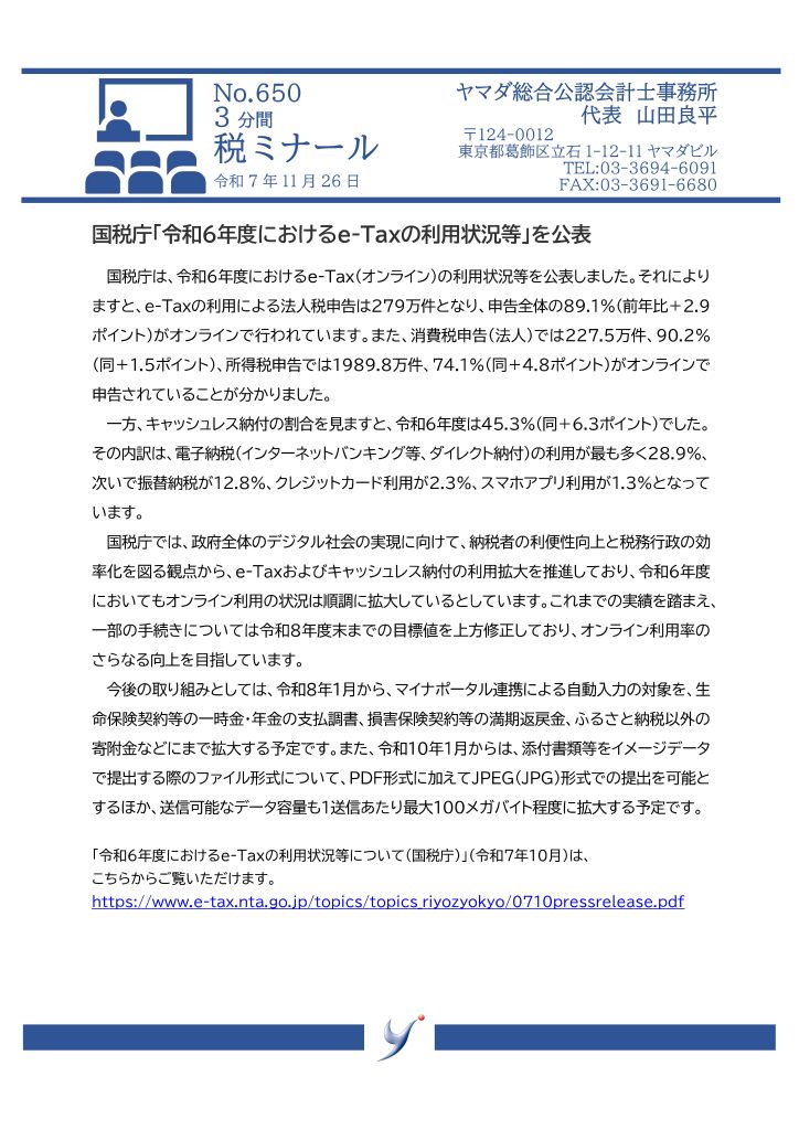 4. 【No.650】国税庁「令和6年度におけるe-Taxの利用状況等」を公表