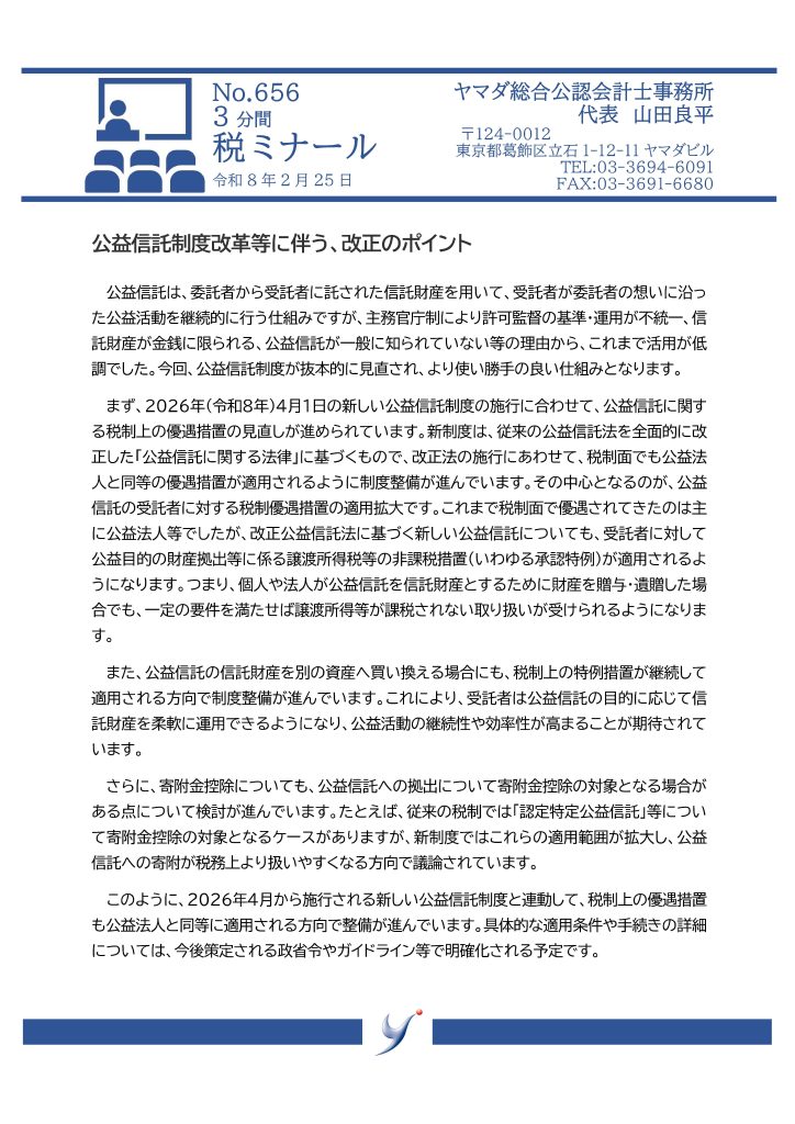 【No.656】公益信託制度改革等に伴う、改正のポイント