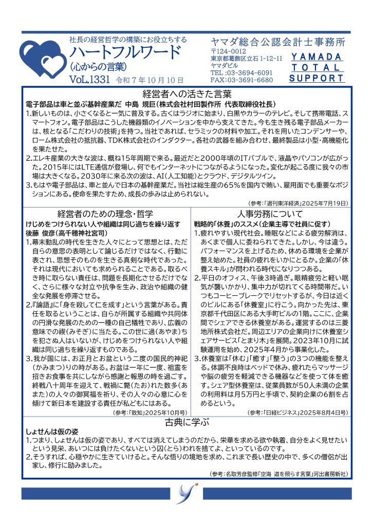 2025年10月10日 / 最終更新日時 : 2025年10月10日 人事労務事業部 ハートフル・ワード~社長の経営哲学の構築に~ 【VoL.1331】電子部品は車と並ぶ基幹産業だ 中島規巨(株式会社村田製作所 代表取締役社長)