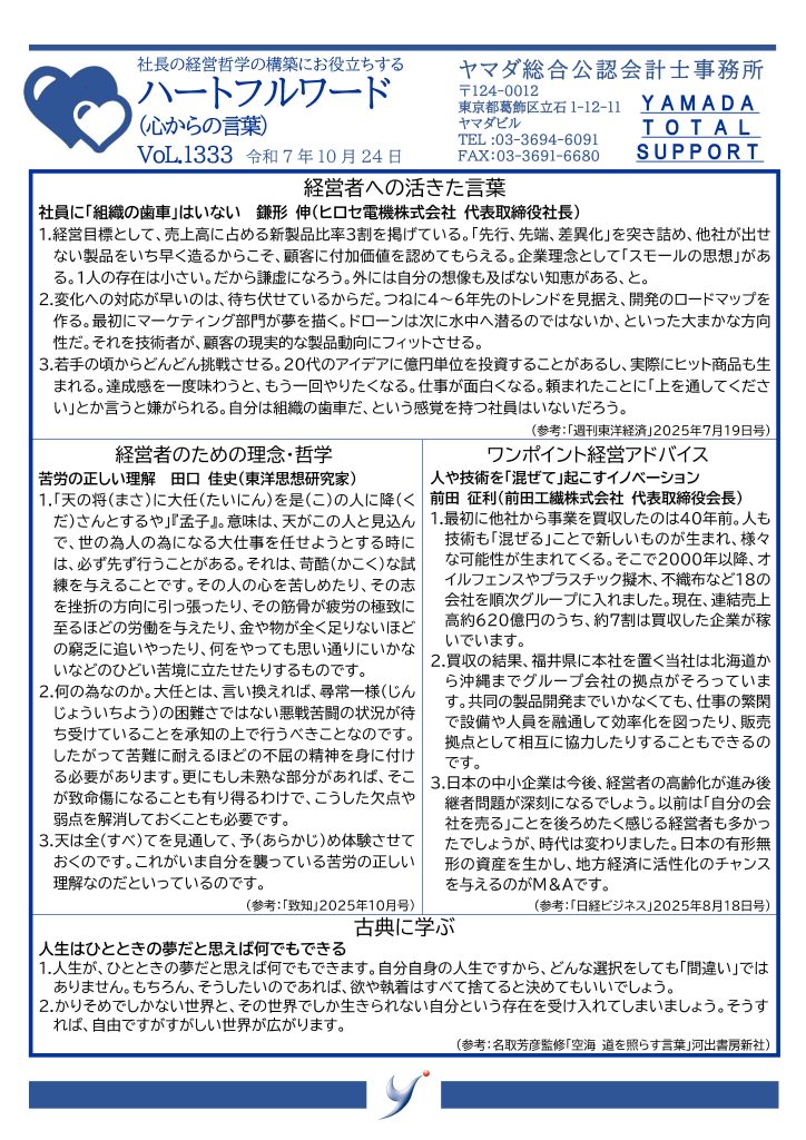 2025年10月24日 / 最終更新日時 : 2025年10月24日 人事労務事業部 ハートフル・ワード~社長の経営哲学の構築に~