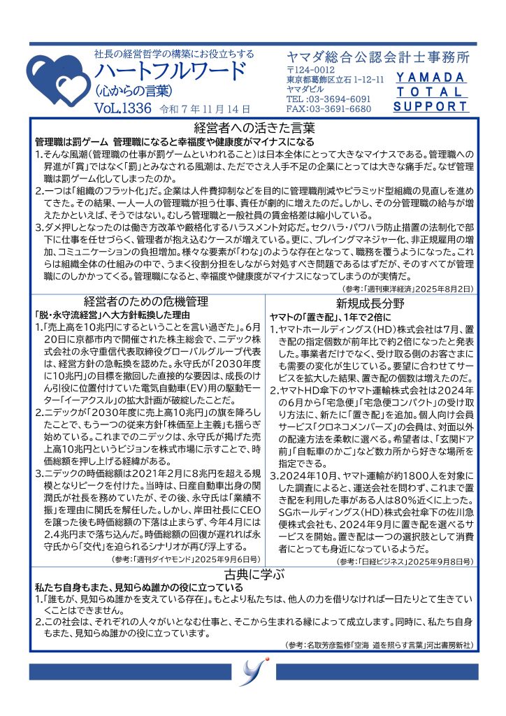 2025年11月17日 / 最終更新日時 : 2025年11月17日 人事労務事業部 ハートフル・ワード~社長の経営哲学の構築に~