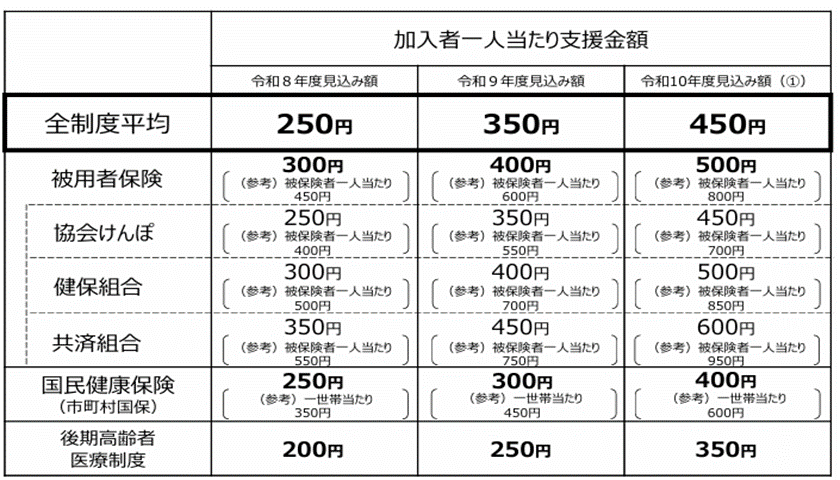 *国としては、社会保障の歳出改革により社会保険の負担を軽減しその軽減された金額分を支援金として国民に負担してもう仕組みなので、実質的な負担は生じないとしています。